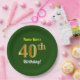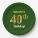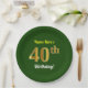 Green, Faux Gold 40th Birthday + Custom Name Paper Plate