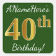 Green, Faux Gold 40th Birthday + Custom Name Square Sticker