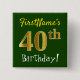 Green, Faux Gold 40th Birthday, With Custom Name 15 Cm Square Badge