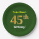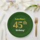 Green, Faux Gold 45th Birthday + Custom Name Paper Plate