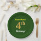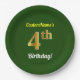 Green, Faux Gold 4th Birthday + Custom Name Paper Plate