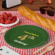 This simple, customised, birthday-themed paper plate design features a customisable message like "CustomName’s 4th Birthday!", where the name can be changed, and with the "4th" having a faux/imitation gold-like appearance. It also features a green coloured background. Paper plates like these could perhaps be used at a party being held to celebrate somebody’s fourth birthday. [~Z0000145]