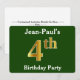 This invitation design features the ordinal number "4th" with a faux gold-like appearance. It also features a custom name, and a green coloured background. The event details on the back can be personalised. It could be used to invite people to somebody’s fourth birthday party. [~Z0000013]