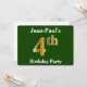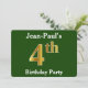 Green, Faux Gold 4th Birthday Party + Custom Name Invitation