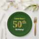 Green, Faux Gold 50th Birthday + Custom Name Paper Plate