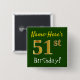 Green, Faux Gold 51st Birthday, With Custom Name 15 Cm Square Badge