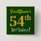 Green, Faux Gold 54th Birthday, With Custom Name 15 Cm Square Badge