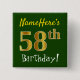 Green, Faux Gold 58th Birthday, With Custom Name 15 Cm Square Badge