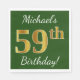 Green, Faux Gold 59th Birthday + Custom Name Napkin