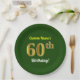 Green, Faux Gold 60th Birthday + Custom Name Paper Plate