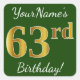 Green, Faux Gold 63rd Birthday + Custom Name Square Sticker