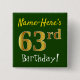 Green, Faux Gold 63rd Birthday, With Custom Name 15 Cm Square Badge