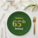Green, Faux Gold 65th Birthday + Custom Name Paper Plate