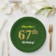Green, Faux Gold 67th Birthday + Custom Name Paper Plate
