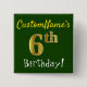 Green, Faux Gold 6th Birthday, With Custom Name 15 Cm Square Badge