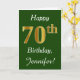 Green, Faux Gold 70th Birthday + Custom Name Card