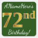 Green, Faux Gold 72nd Birthday + Custom Name Square Sticker