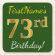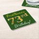 Green, Faux Gold 73rd Birthday + Custom Name Square Paper Coaster
