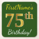 Green, Faux Gold 75th Birthday + Custom Name Square Paper Coaster