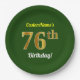 Green, Faux Gold 76th Birthday + Custom Name Paper Plate