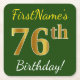 Green, Faux Gold 76th Birthday + Custom Name Square Paper Coaster