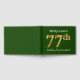 This guest book design features the ordinal number "77th" with a faux/imitation gold-like appearance. It also features a customised name, and a green coloured background. It could be used at a party for somebody celebrating their seventy seventh birthday. [~Z0000056]