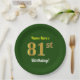 Green, Faux Gold 81st Birthday + Custom Name Paper Plate