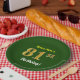 This simple, customised, birthday-themed paper plate design features a customisable message like "Name-Here’s 81st Birthday!", where the name can be changed, and with the "81st" having a faux/imitation gold-like appearance. It also features a green coloured background. Paper plates like these could perhaps be used at a party being held to celebrate somebody’s eighty first birthday. [~Z0000145]