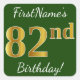Green, Faux Gold 82nd Birthday + Custom Name Square Sticker