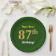 Green, Faux Gold 87th Birthday + Custom Name Paper Plate