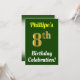 Green, Faux Gold 8th Birthday Celebration + Name Invitation