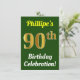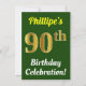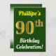 Green, Faux Gold 90th Birthday Celebration + Name Invitation
