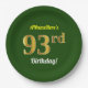 Green, Faux Gold 93rd Birthday + Custom Name Paper Plate