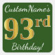 Green, Faux Gold 93rd Birthday + Custom Name Square Sticker