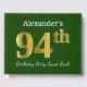 Green, Faux Gold 94th Birthday Party + Custom Name Guest Book