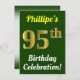 Green, Faux Gold 95th Birthday Celebration + Name Invitation