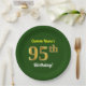 Green, Faux Gold 95th Birthday + Custom Name Paper Plate