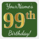 Green, Faux Gold 99th Birthday + Custom Name Square Sticker