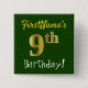 Green, Faux Gold 9th Birthday, With Custom Name 15 Cm Square Badge