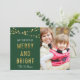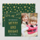 Green, Faux Gold Merry & Bright Lights Photo Holiday Card