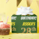 This wrapping paper design features a message like "JESSICA’S 28th BIRTHDAY!", with the "28th" having a faux/imitation gold-like colour appearance, and with the name and "BIRTHDAY" in a fun, bold font. The name can be personalised, and the background is coloured green. Wrapping paper like this could perhaps be used when wrapping birthday gifts being given to somebody in celebration of their twenty eighth birthday. [~Z0000208]