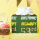 This wrapping paper design features a message like "REGINALD’S 53rd BIRTHDAY!", with the "53rd" having a faux/imitation gold-like colour appearance, and with the name and "BIRTHDAY" in a fun, bold font. The name can be personalised, and the background is coloured green. Wrapping paper like this could perhaps be used when wrapping birthday gifts being given to somebody in celebration of their fifty third birthday. [~Z0000208]