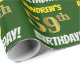 This wrapping paper design features a message like "ANDREW’S 59th BIRTHDAY!", with the "59th" having a faux/imitation gold-like colour appearance, and with the name and "BIRTHDAY" in a fun, bold font. The name can be customised, and the background is coloured green. Wrapping paper like this could perhaps be used when wrapping birthday gifts being given to somebody in celebration of their fifty ninth birthday. [~Z0000208]