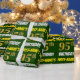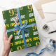 This wrapping paper design features a message like "FIRST-NAME’S 95th BIRTHDAY!", with the "95th" having a faux/imitation gold-like colour appearance, and with the name and "BIRTHDAY" in a fun, bold font. The name can be personalised, and the background is coloured green. Wrapping paper like this could perhaps be used when wrapping birthday gifts being given to somebody in celebration of their ninety fifth birthday. [~Z0000208]