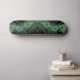 Amazing peacock feather skateboard with a black background. This still life of the three peacock feathers looks amazing against the black background. The rich green and blue colours of the peacock feather are vibrant and so elegant.