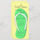 Big green flip flop bridal shower invitation with a yellow polka dot background. Personalise text as needed add registry information to the back or delete it if unwanted.
