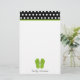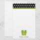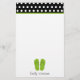 Stationery featuring a border of black with white polka dots and green trim at top. Illustration of a pair of green flip flops at bottom. Personalise with your name under flip flops. Look for matching items at Jill's Paperie.