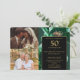 Green Floral Black Gold 50th Anniversary 2 Photo Invitation