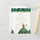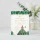 This elegant and glamourous birthday party invitation features a beautiful princess with blonde hair and fair skin in a green ball gown. The text combines handwritten script and modern sans serif fonts for a classy and sophisticated look. The floral arrangements, butterflies and gold confetti create the perfect blend of rustic and chic.