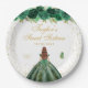 Green Floral Brown Hair Princess Sweet Sixteen Paper Plate